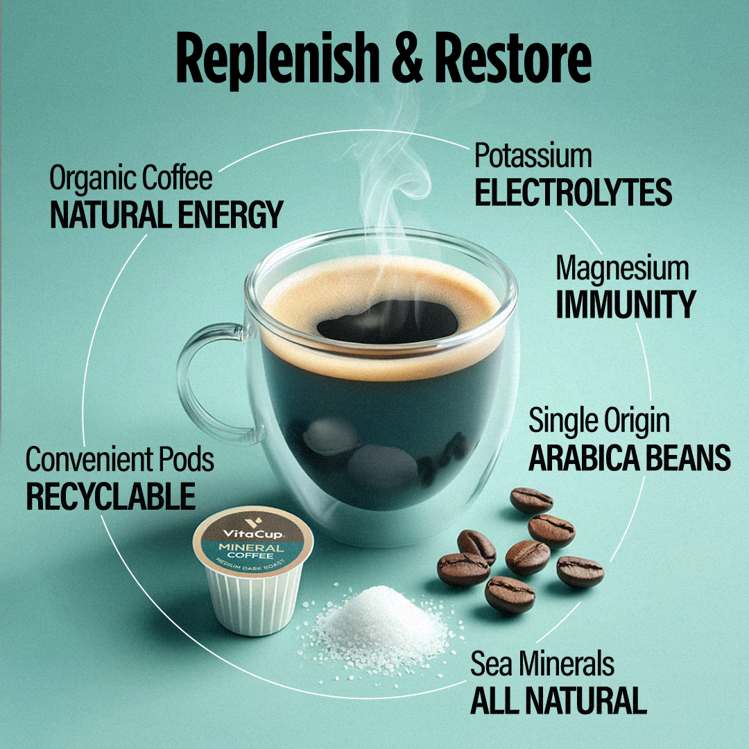 Experience the power of Mineral Coffee, a premium blend formulated to provide your body with the essential minerals it craves. Crafted by expert roastmasters and a Registered Dietitian, this coffee combines the rich flavor of 100% organic Arabica beans with the restorative properties of Ionic Sea Minerals. From Magnesium to Chloride and Sulfate, each sip delivers a full spectrum of nutrients to help replenish and restore your body's natural balance. Indulge in a cup of Mineral Coffee and feel the difference as your body thrives on the nourishment it deserves.