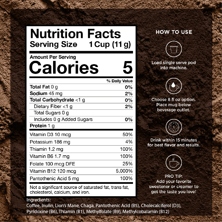 Each pod contains a powerful B and D3 vitamin blend to bolster mental and physical health.